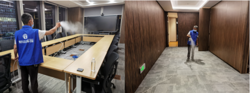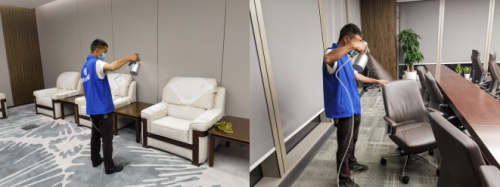 施工第1道:完全分解空氣中游離態(tài)污染物,采用方法:全空間霧化技術(shù)(空調(diào)新風(fēng)窗戶需關(guān)閉)。